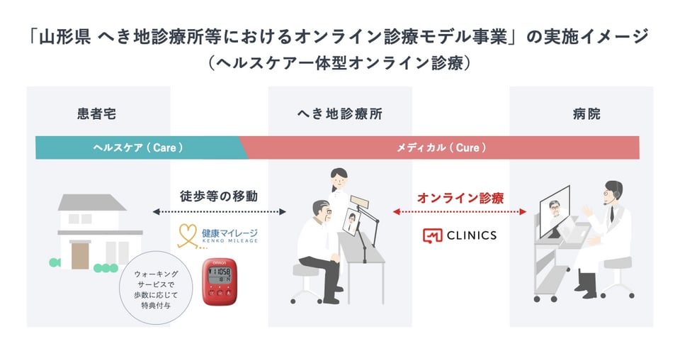 NTT Comとメドレー、山形県の「へき地診療所等におけるオンライン診療モデル事業」を「CLINICSオンライン診療」と「健康マイレージ」で支援